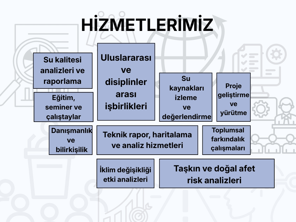 Su potansiyeli belirleme, çevresel etki değerlendirme, coğrafi analiz ve modelleme çalışmalarının yapılması. |